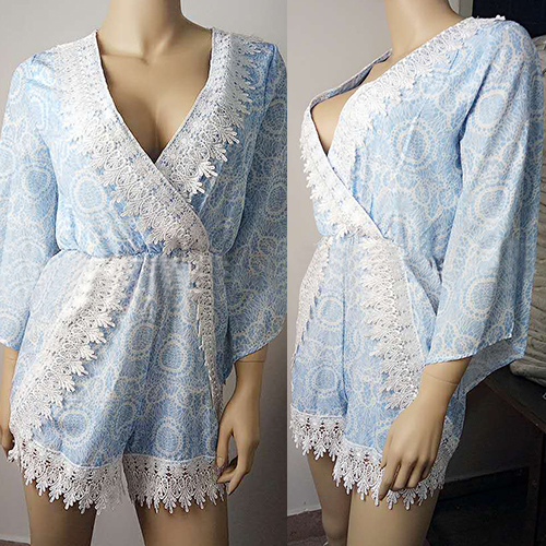 with a deep v-neckline and lace spliced design,this number is designed to give you an eye-catching look.