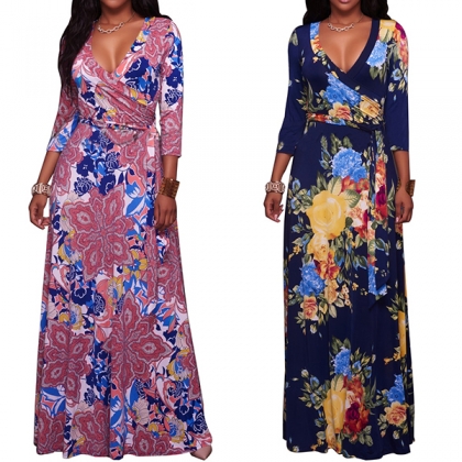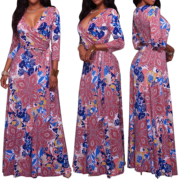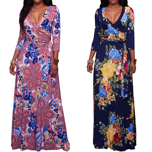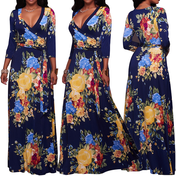 with 3/4 sleeve,deep v-neck and a maxi length,this dress is your perfect partner for your garden parties or weekend gatherings.