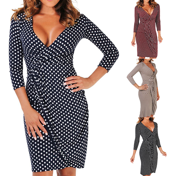 Dots printed design can give you a more playful vibe,while the deep v-neck and fit silhouette design can showcase your