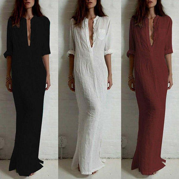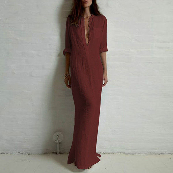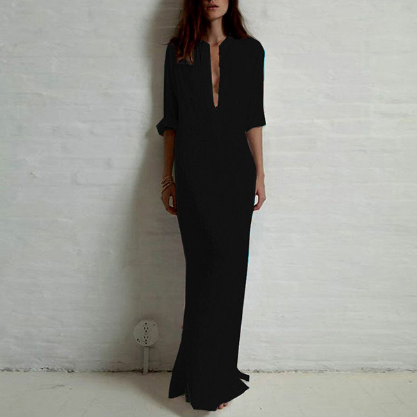 and breathable fabric can give you an utmost comfort,while the deep v-neck and maxi length design