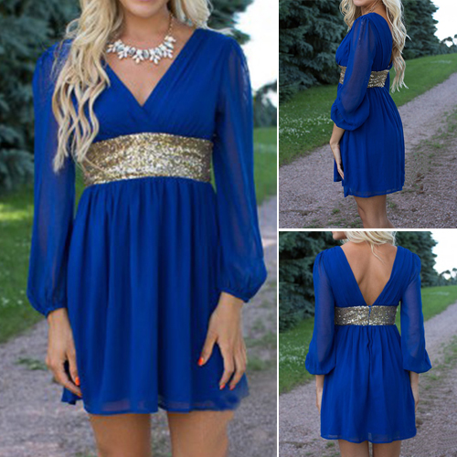 Deep v-neck and backless design can emphasize your sexy chest and back. Gathered waist design
