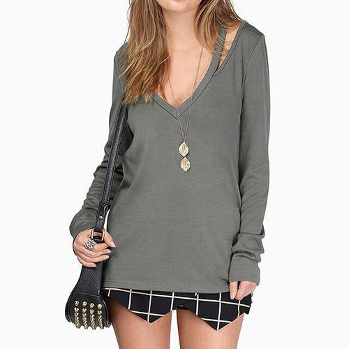 This t-shirt features solid color style,with long sleeve and a loose silhouette,cozy and stylish,