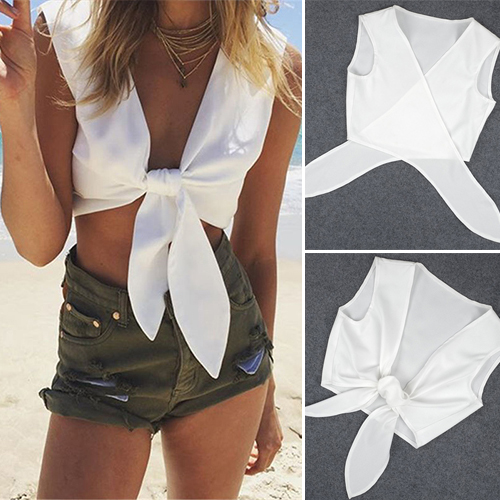 with sleeveless,deep v-neck and bowknot hem design,sexy,chic and charming. Paired