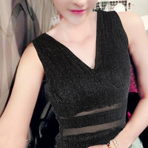 Its deep v-neck and see-through gauze spliced design makes it look so sexy and sultry. Paired with