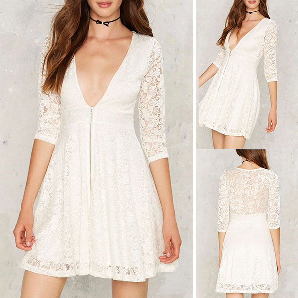 and weekend gatherings. It is finished with half sleeve,high waist and deep v-neck design,this lace dress
