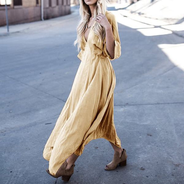 When strolling on the street with this dress,you can win more eyes. Solid color style,outfitted with half sleeve,
