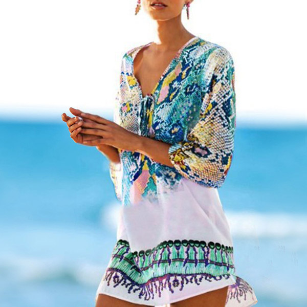 When head to the seaside,this beach dress can be your perfect partner. Its chic printed pattern