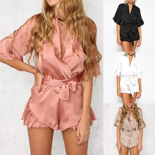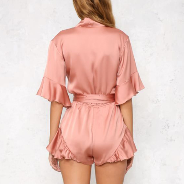 It is styled with solid color,half sleeve,deep v-neck and ruffle hem,this wonderful romper can make any girl look