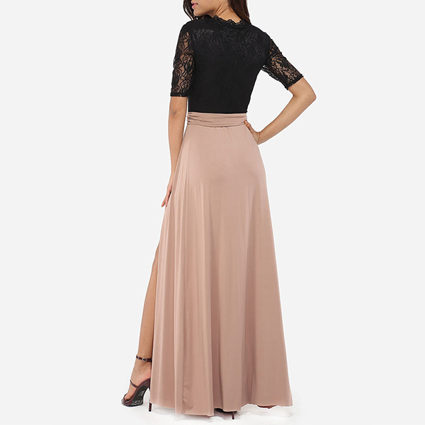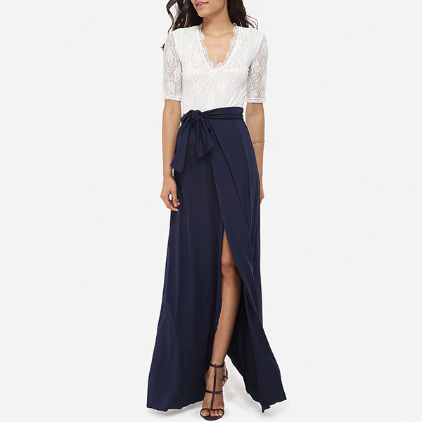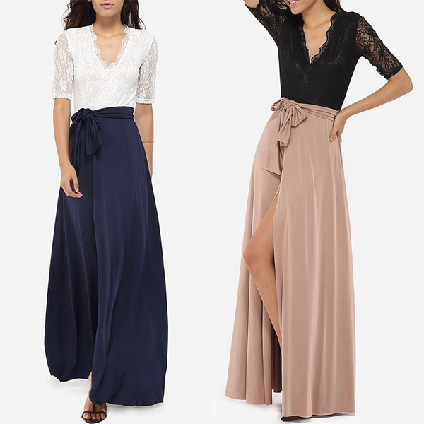 Its stunning details like deep v-neck,slit hem and lace spliced design make this piece look so alluring.