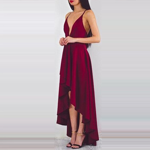 For an elegant and feminine dress on that special day, opt for this number! Solid color style,wih deep v-neck and a