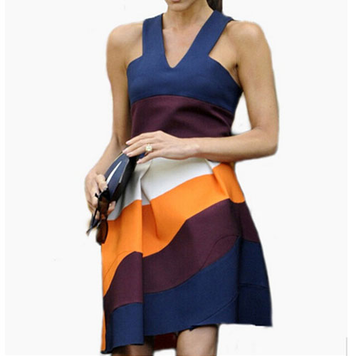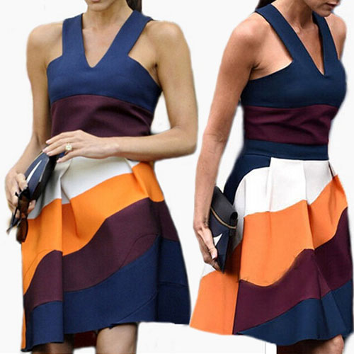 The contrast color trend is still going strong, and we can certainly see why. This dress makes us fall in love with this style all over