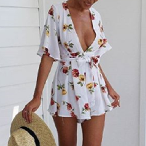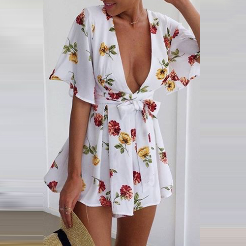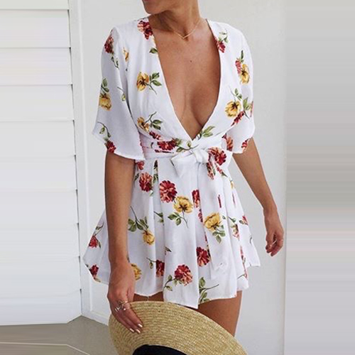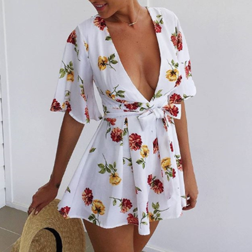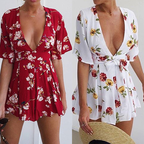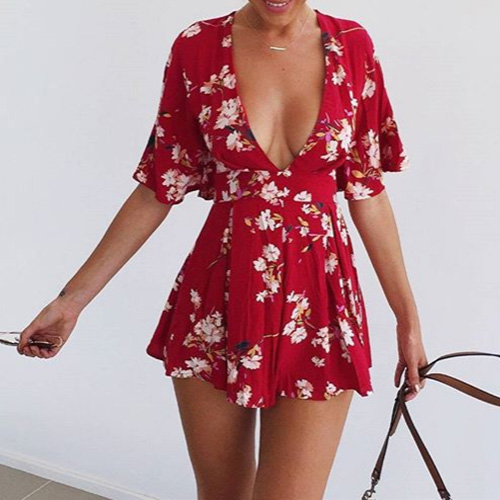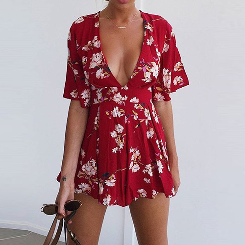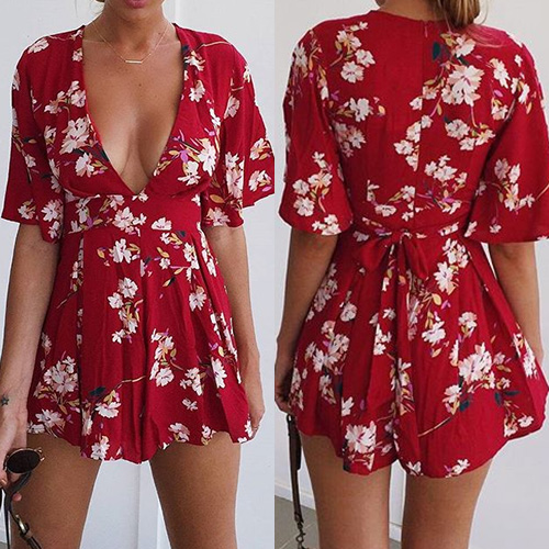 Boasting a vibrant floral print,with a deep v-neckline design adds some sexy and sultry flavor.