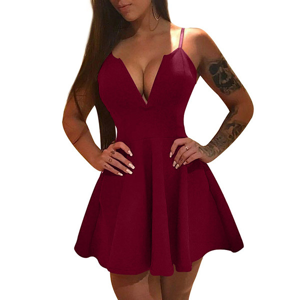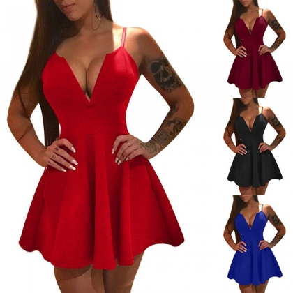 Sling style,the solid color tone design can give you an elegant vibe,while the deep v-neck