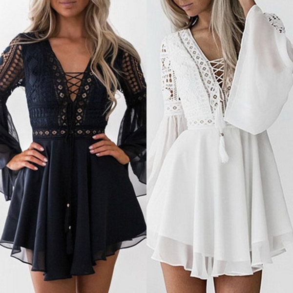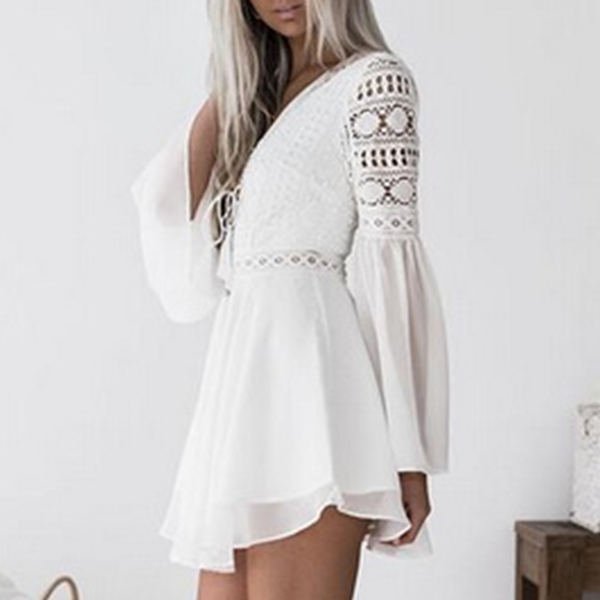 a lace spliced bodice for preparing a sweet dress up, come with V-neckline with lace-up accent, bell sleeves,
