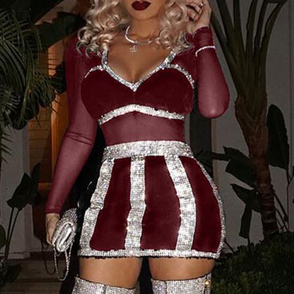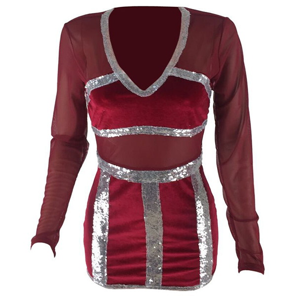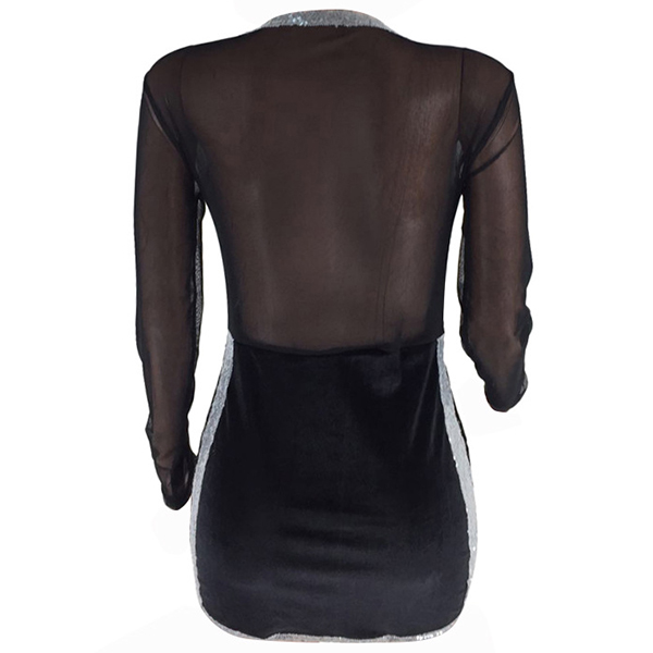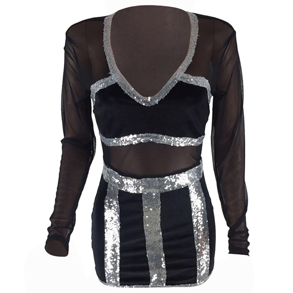 You can easily arouse a splash when you slip into this dress. The deep v-neck and hollow out gauze spliced