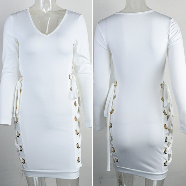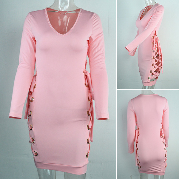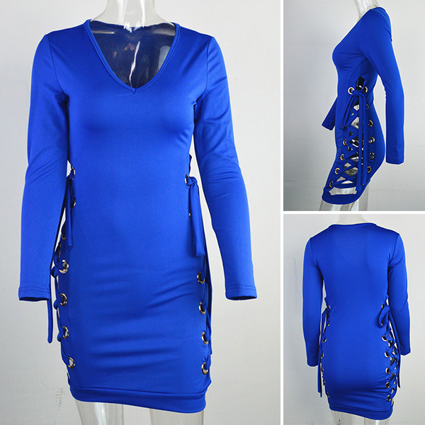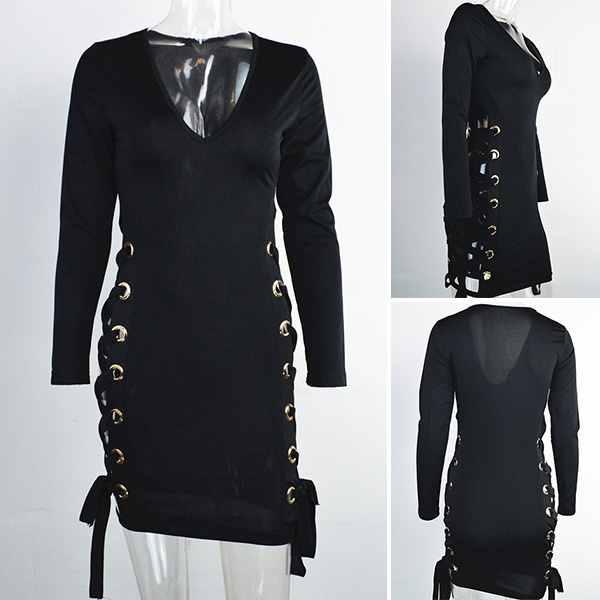 distinctive details like deep v-neck,keyholes and hollow out lace-up design make this dress sexy and alluring.