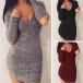 You can slip into this dress to achieve for a cozy yet sexy style. Solid color style,the deep v-neck and hollow