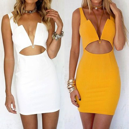 Sexy Deep V-neck Hollow Out Slim Fit Solid Color Dress
