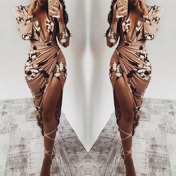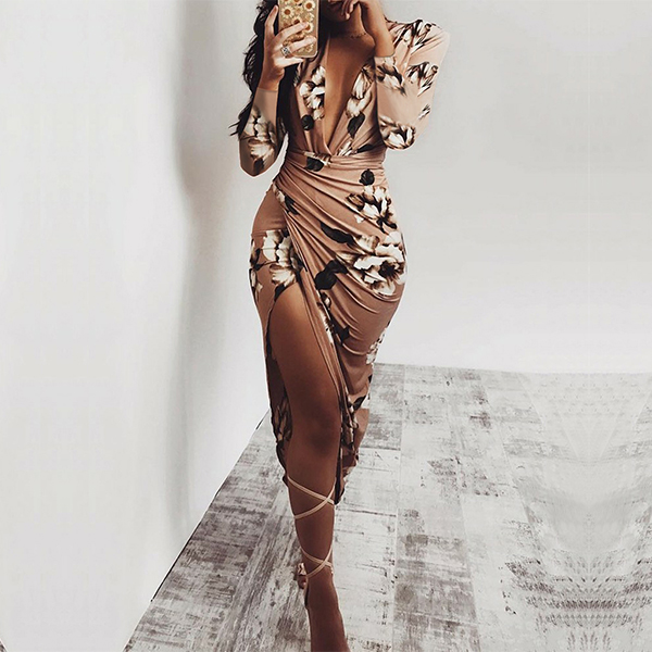 Seductive appeal comes easily once you slip into this dress. It adopts chic and eye-catching printed pattern,