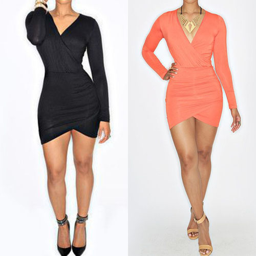 This sheath dress features solid color style,its deep v-neck and irregular hem design makes it