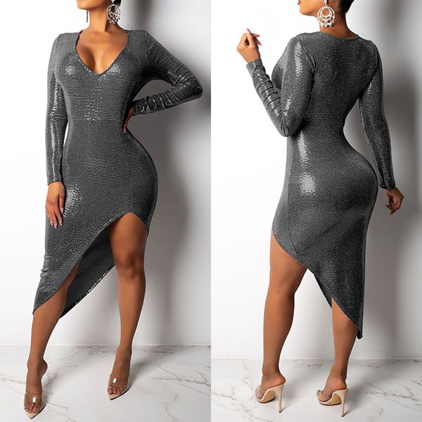 The deep v-neck and irregular hem design will give you a more alluring look,while the tight silhouette