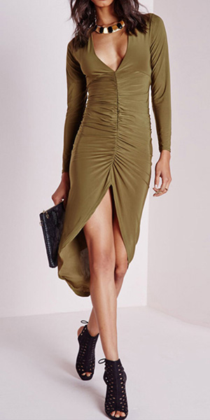 and generous. Its flirty design like deep v-neck and irregular hem makes this dress sexy and sultry.