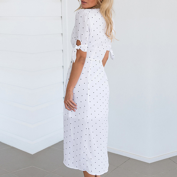 design are the highlights,which make this dress attractive,while the dots printed pattern design can