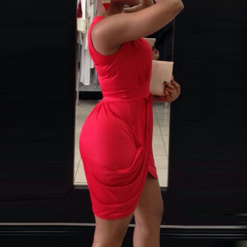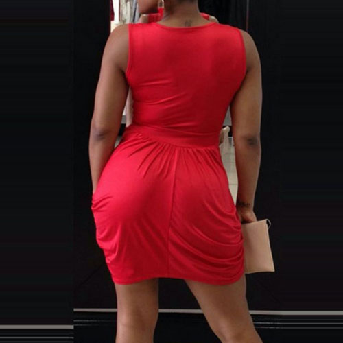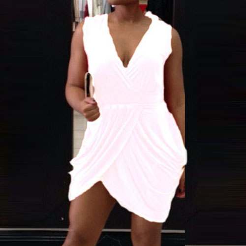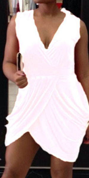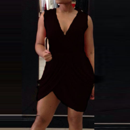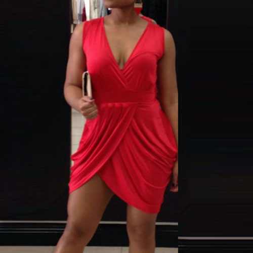 your wardrobe. Boasting a solid color,with sleeveless,deep v-neck and irregular hem design,sexy