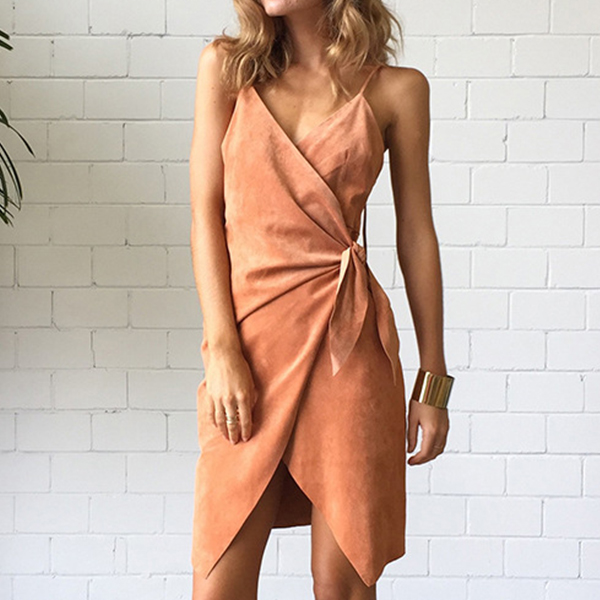 deep v-neck and an irregular hem,sexy and chic. On the other hand,its lace-up design at waist part can better sketch