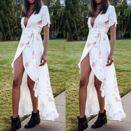 its stunning details such as deep v-neckline and irregular slit hem make this piece more sexy