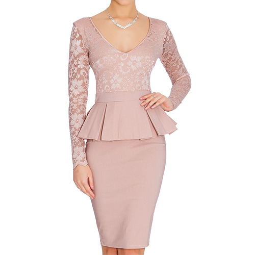 this dress oozes a sense of sophisticated appeal whilst the ruffle and lace-detail adds a romantic note to your ensemble.