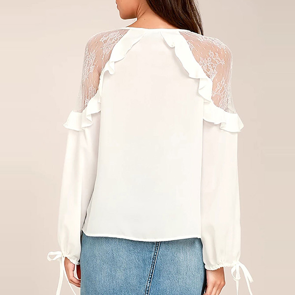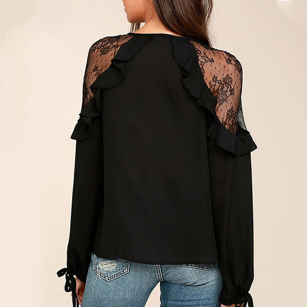 Upgrading your style is an easy thing with this chiffon top. Solid color style,the deep v-neck and lace