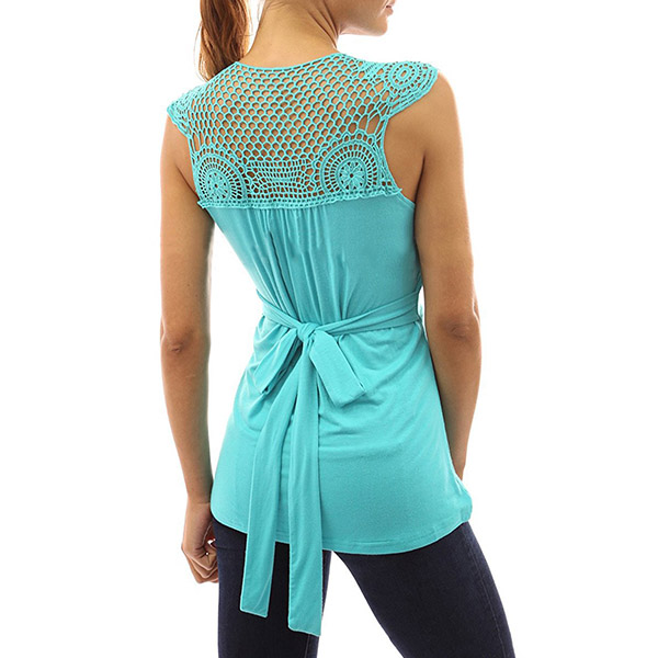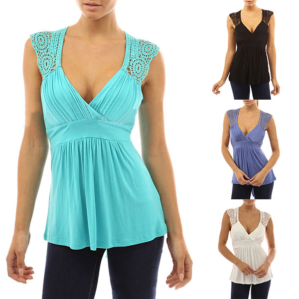 Sexy Deep V-neck Lace Spliced Sleeveless Solid Color Top