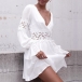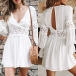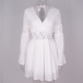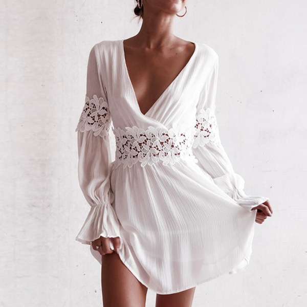 Comes with a solid color,the deep v-neck,trumpet sleeve and lace spliced design make it look so