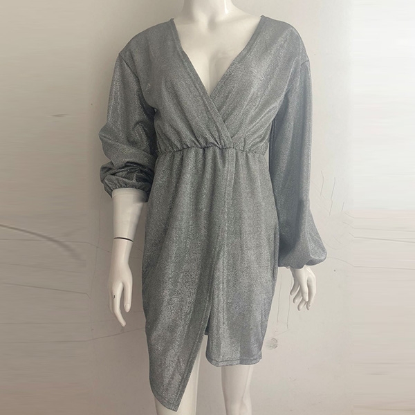 Its stunning details like deep v-neck,lantern sleeve and irregular hem design make this piece look so sexy