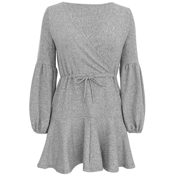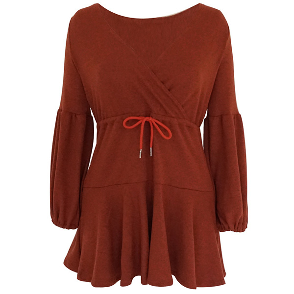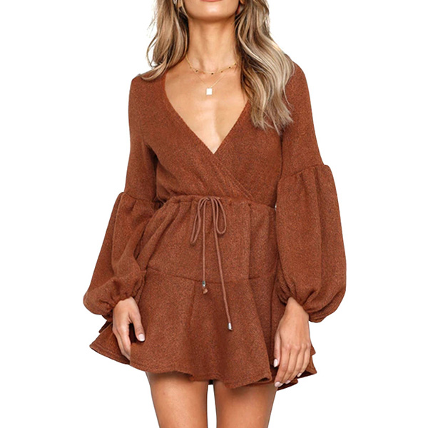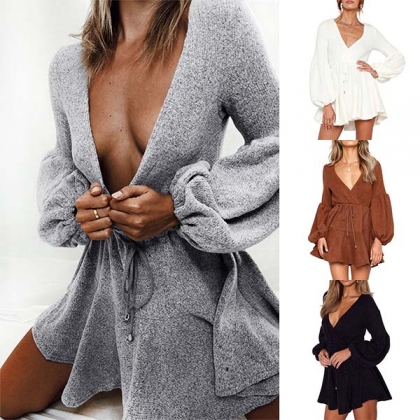 Comes with a solid color,the deep v-neck and lantern sleeve design are the highlights,