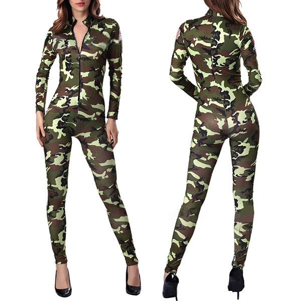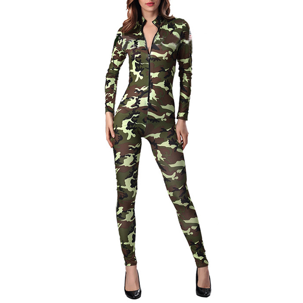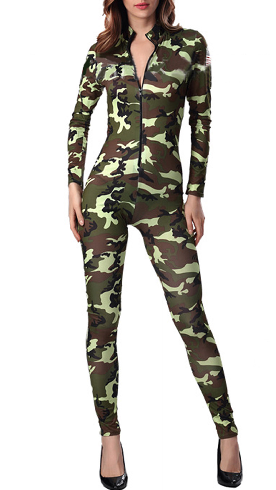 camouflage printed pattern,with long sleeve,deep v-neckline and a fit silhouette,this piece is easy to make you stand
