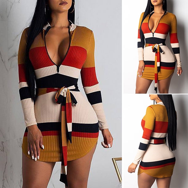 breathtaking dress. Contrast color style,the deep v-neck design will give you a sexier look,while the tight