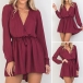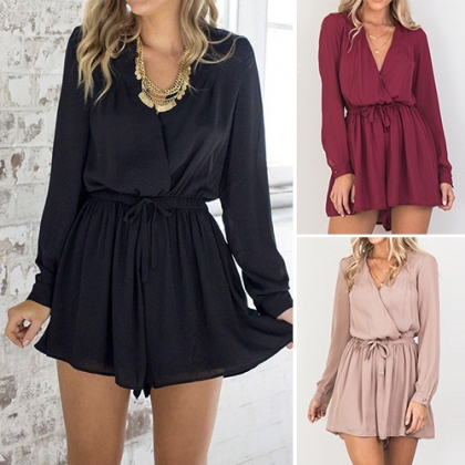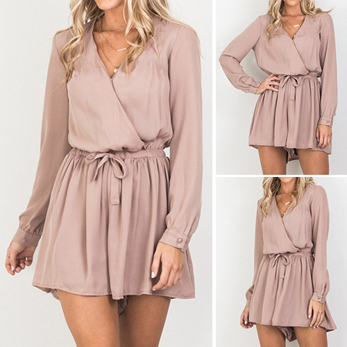 Solid color style,designed with long sleeve and an elastic waist,and its deep v-neck design adds a touch of sexy vibe.