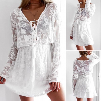 The lace-up deep v-neck design makes this piece look so alluring,while the embroidered details make
