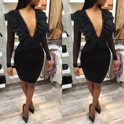 It is an easy thing to arouse a splash when you dress yourself up with this tight dress. The deep v-neck and