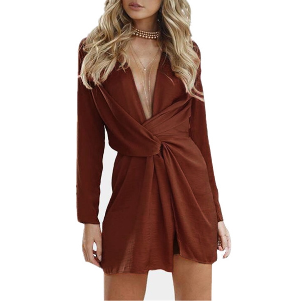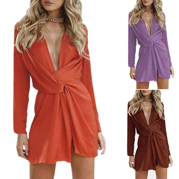 with solid color,the deep v-neck and front twisted design will make this piece look sexy and distinctive.