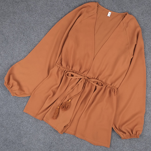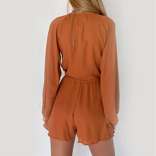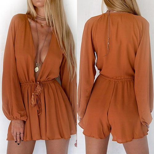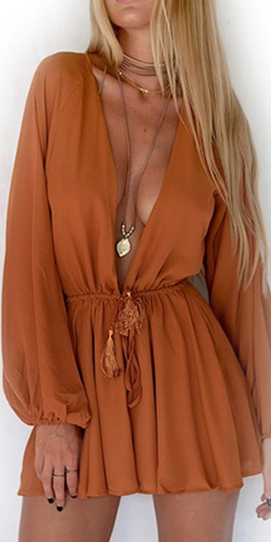 Summer style looks a lot like this long sleeve romper! Boasting a solid color,with a deep v-neckline