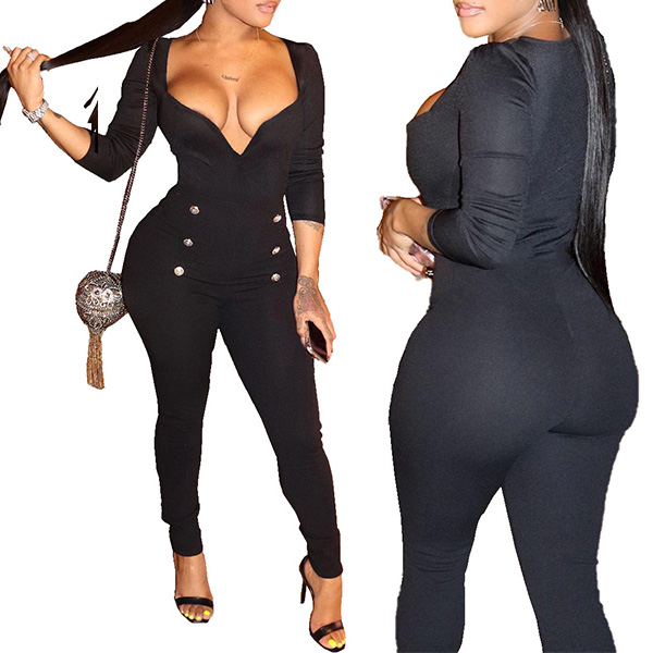 You can easily showcase your sexy and seductive curve through this jumpsuit thanks to its tight silhouette design. Comes with a classic yet elegant white tone,the deep v-neck design design will give you a more alluring look. Front decorated with double-breasted design makes this piece look more attractive. You can match with your sexy heels to win more eyes.