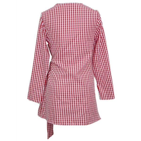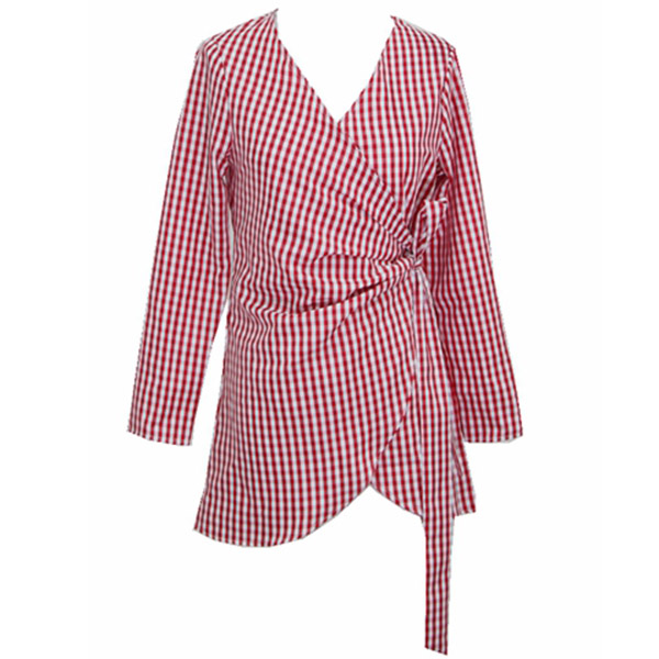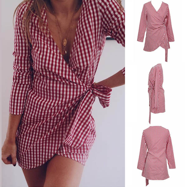 Plaid style,finished with long sleeve,deep v-neck and an irregular hem,this dress can make your look charming.