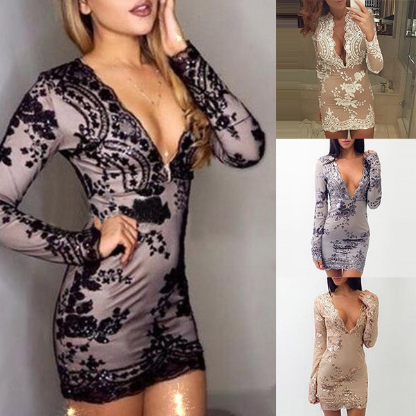 dress. Designed with long sleeve,deep v-neck,irregular hem and a tight silhouette,this dress will showcase your alluring style