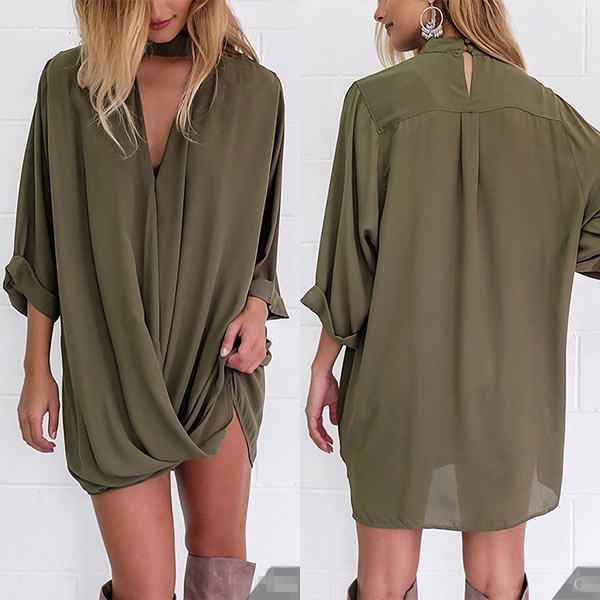 this chiffon top is a good example. Solid color style,the deep v-neck and irregular hem design are