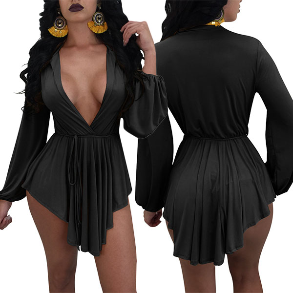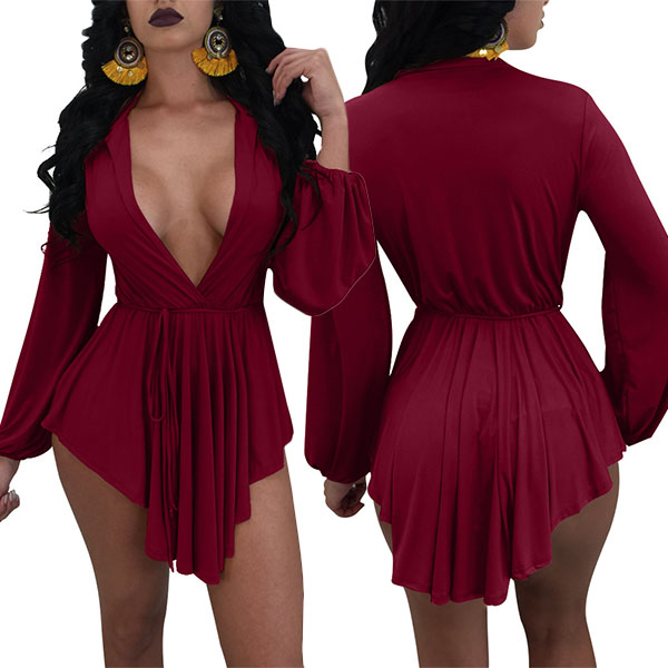 the deep v-neck and irregular hem design can give you a sexier look. You can match with a long tassel