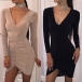 outfitted with long sleeve,deep v-neck,irregular hem and a tight silhouette,this dress knows how to demonstrate your