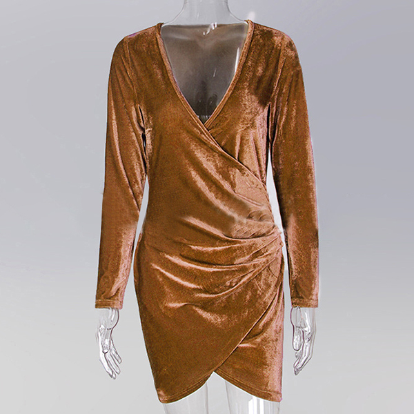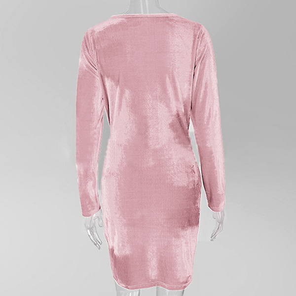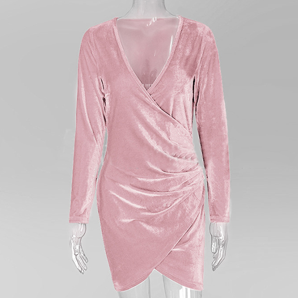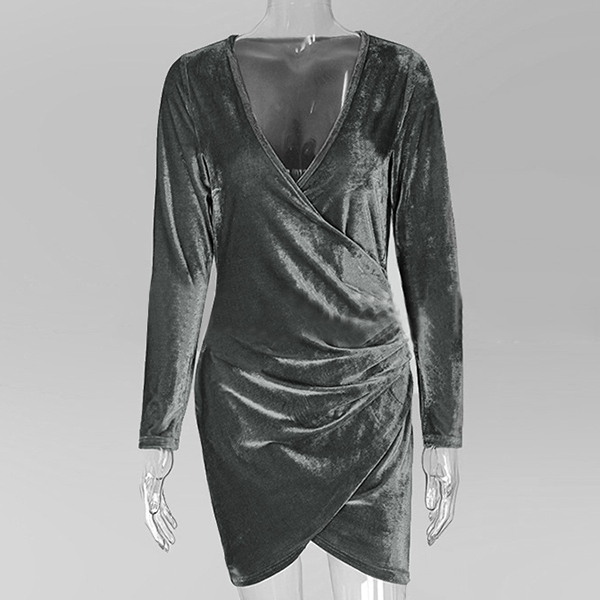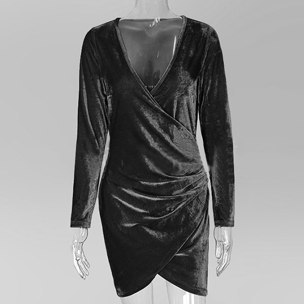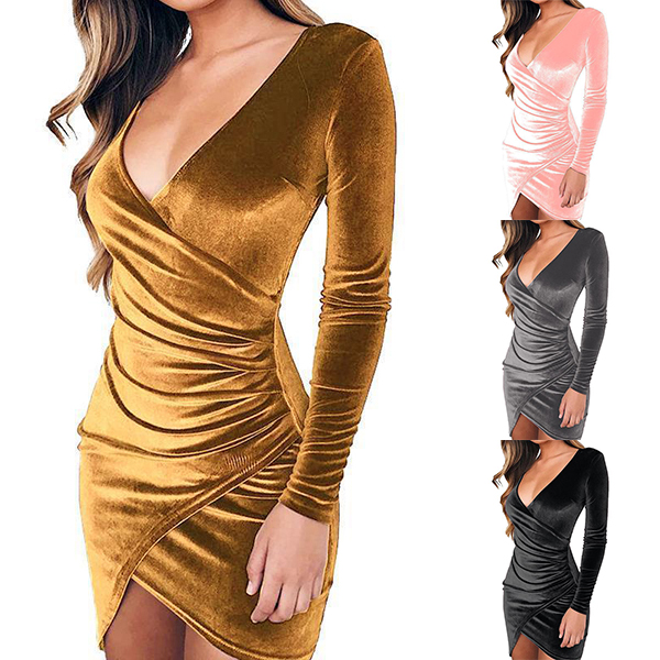 this stunning dress in your team. Boasts an elegant solid color tone,designed with long sleeve,deep v-neck,